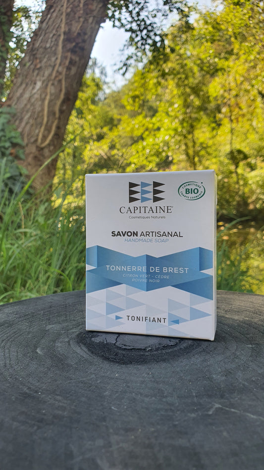 Savon artisanal solide - Tonnerre de Brest - Citron vert, cèdre et poivre noir